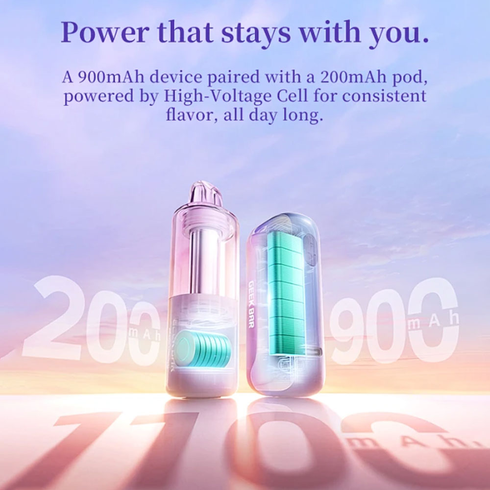 • Powerful Rechargeable 1100mAh Battery (900mAh Reusable + 200mAh Built-in Pod Battery)