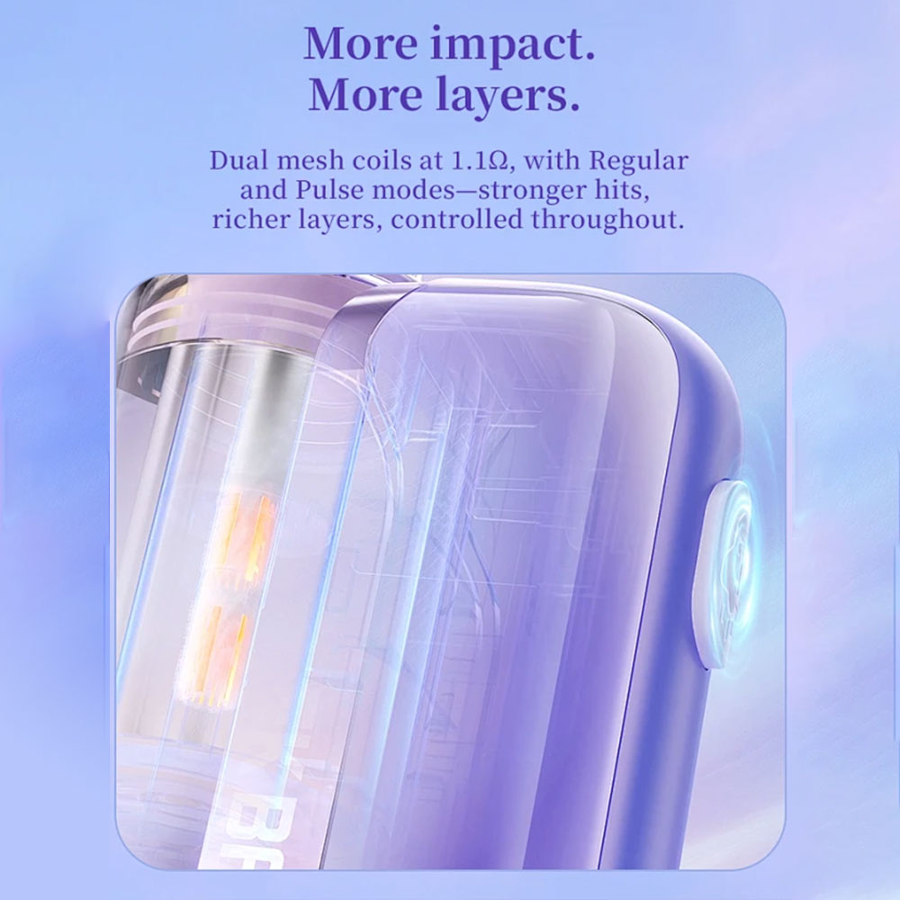 • Puff Count: Approximately 60000 Puffs (Regular Mode) / 30000 Puffs (Pulse Mode)