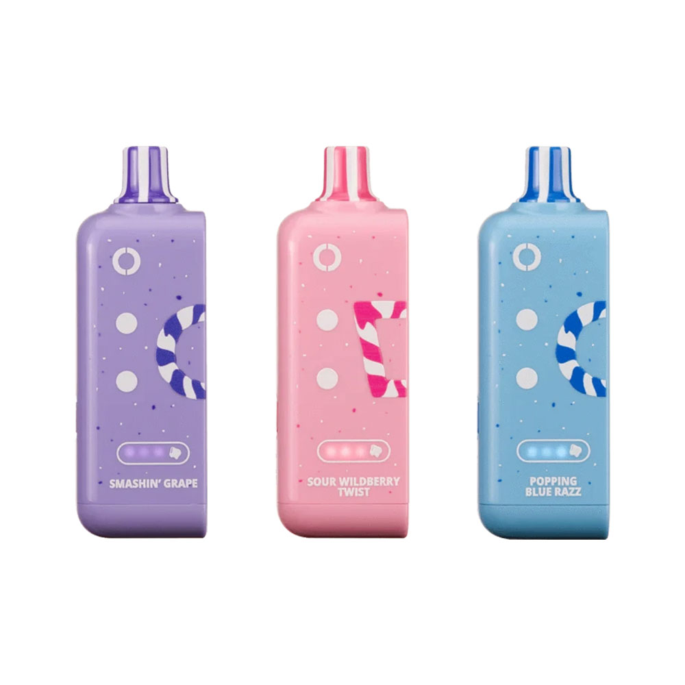 Popping Blue Razz (Blue Razz Blow Pop),Smashin’ Grape(Grape Rancher),Lemon Noggin (Lemon Heads),Sour Berry Kick (Sour Berry Bubblegum),Sour Lush(Sour Lush Gummy),Sour Wildberry Twist (Sour Wildberry Gummy),Twisted Strawberry (Strawberry Rolls Up),Wintergreen Blast (Wintergreen Candy)