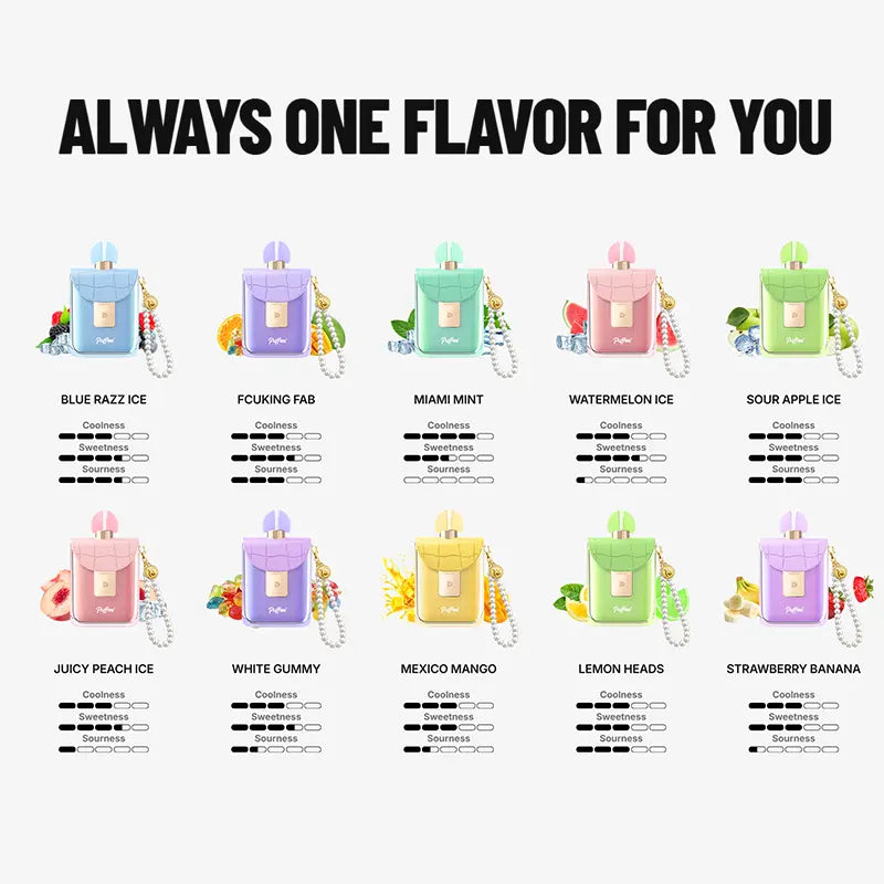 The Puffmi Flora 40K Disposable Vape blends fashion and performance under Puffmi’s “For Her, For Confidence” concept. Made in the U.S. and fully Texas-compliant, this stylish device includes a pearl lanyard for effortless everyday carry. Its silky airflow and stable flavor output keep each draw satisfying from the first puff to the last. With draw-activation, no buttons, and no refills, the Flora delivers up to 40,000 puffs—bringing convenience, elegance, and reliability together in a single device.