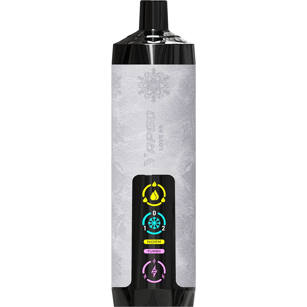 - Display: Smart digital display showing battery, e-liquid level, power mode, and ice level